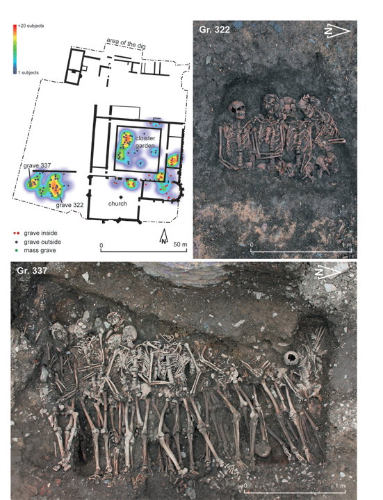 I due campi e le due fosse scavate dall’Inrap a Rennes contengono esclusivamente scheletri maschili: quattro in una e ventotto nell’altra. Nella prima, la maggior parte degli individui, tutti giovanissimi, risulta morta in seguito a traumi.