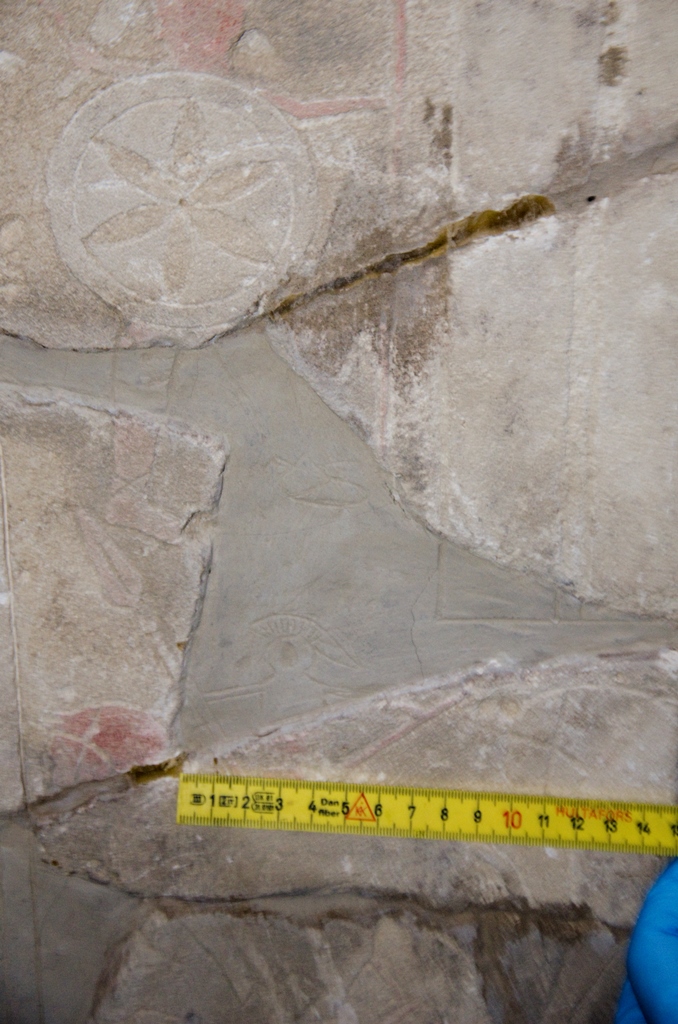Il reperto appariva incompleto nella parte centrale, mancante in particolare di un’iscrizione decorativa corrispondente a un frammento custodito presso il Museo Archeologico di Trinitapoli (BAT) che, secondo l’intuizione di un funzionario del Laboratorio di Restauro, completava il disegno del margine inferiore dello scudo e la parte superiore del guerriero a cavallo, raffigurati nell’antico manufatto.