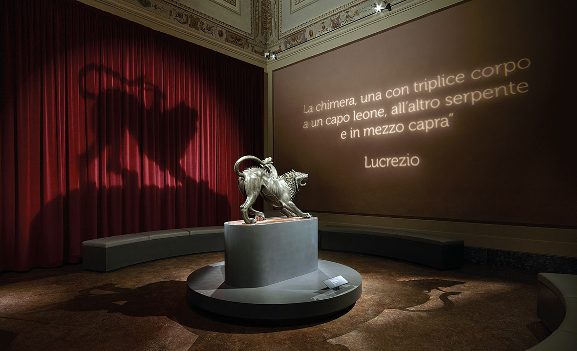 Il Museo Archeologico Nazionale di Firenze riporta al centro dell’esposizione la sua opera più iconica, la Chimera d’Arezzo, attraverso uno spazio espositivo esperienziale che la restituisce in una veste immersiva e dal forte impatto visivo. Con l’apertura della Sala della Chimera il Museo di Firenze inaugura una serie di iniziative per ricordare l’alluvione del 1966 nel sessantesimo anniversario, quando le melmose acque dell’Arno ne colpirono duramente le collezioni. Per la prima volta, la straordinaria scultura etrusca del 400 a.C. circa, capolavoro di espressionismo eclettico che coniuga stilizzazioni arcaiche e realismo classico, trova degna collocazione in uno spazio tutto suo. Il nuovo allestimento è concepito per offrire un’esperienza intima del celebre bronzo etrusco.